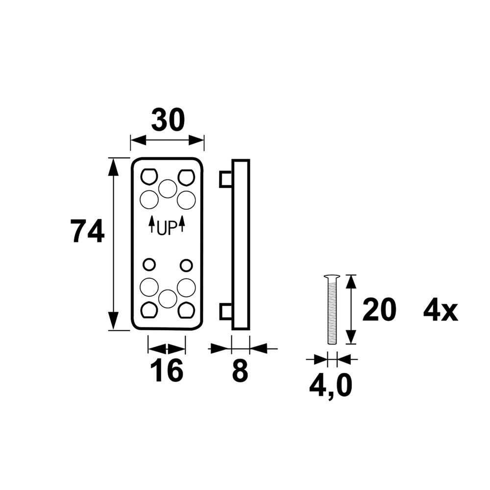 ONDERLEGPLAAT MET TAPTITES/8MM/ZAMAC VERZINKT/TBV 3318-3319-3320