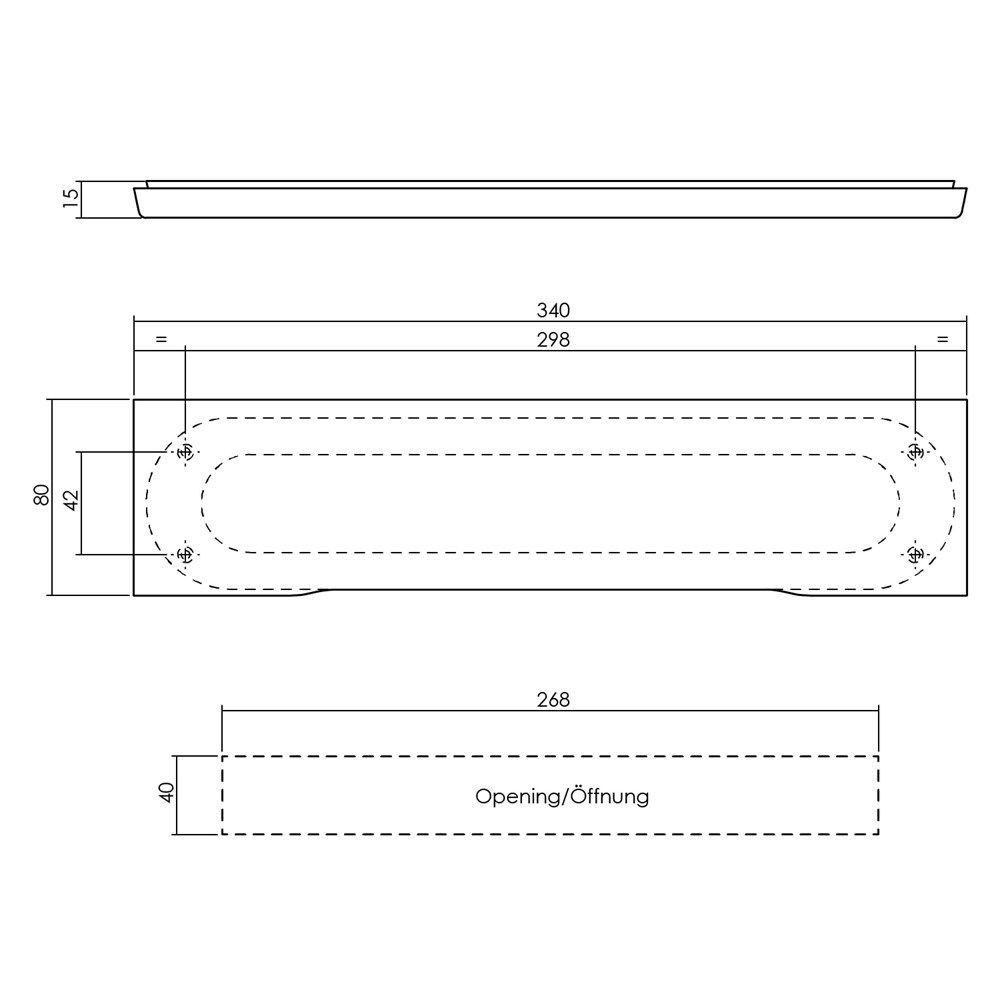 TOCHTWERING RECHTHOEKIG 340X80MM VERDEKT RVS