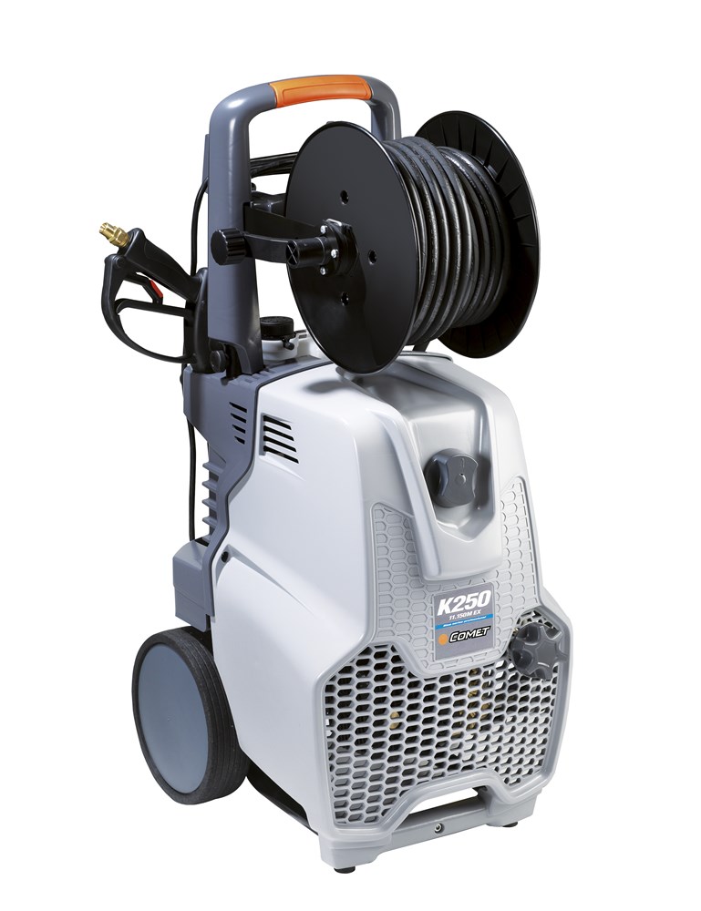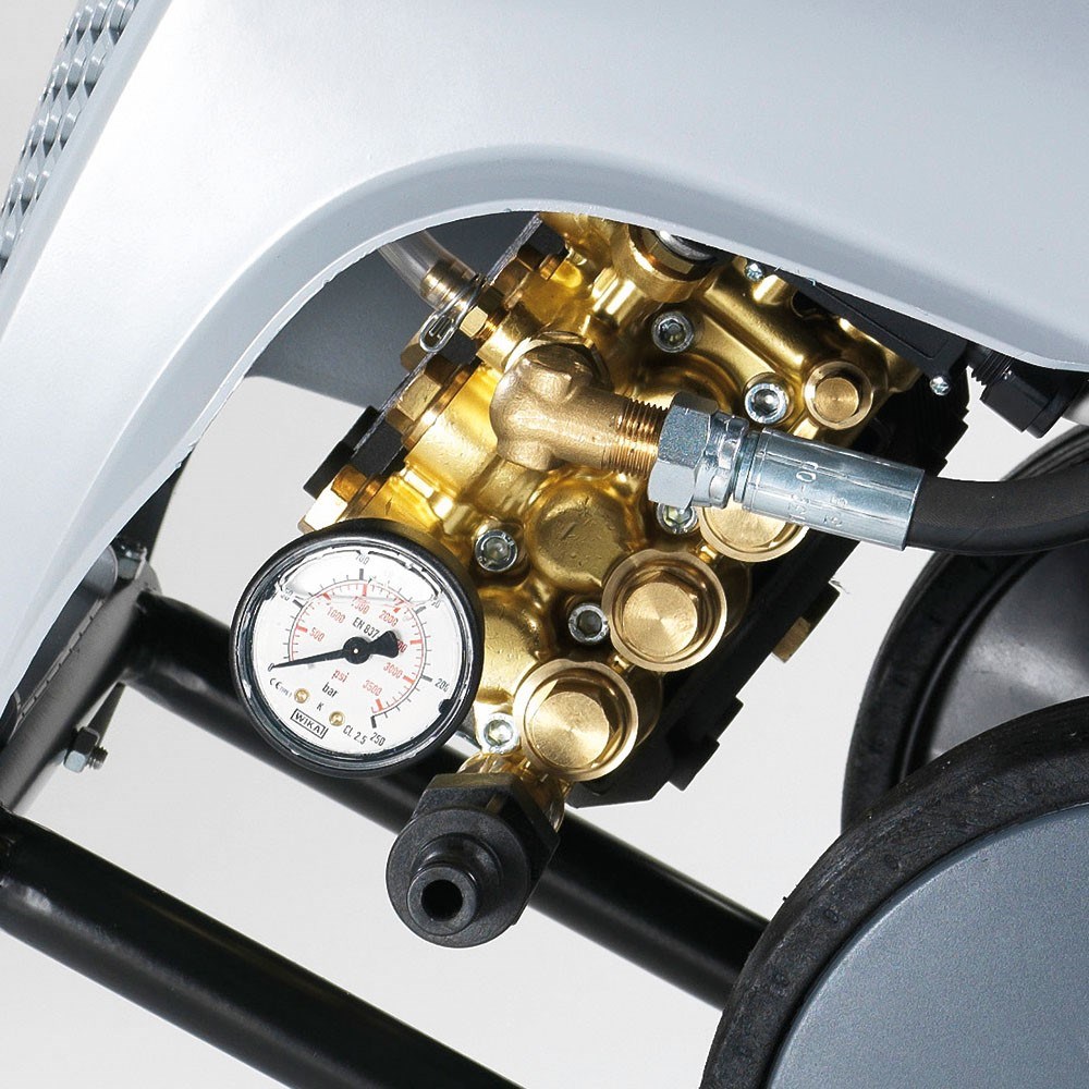 - Comet pomp type LW-K met keramische zuigers, messing pompkop, oliekijkglas en thermische beveiliging