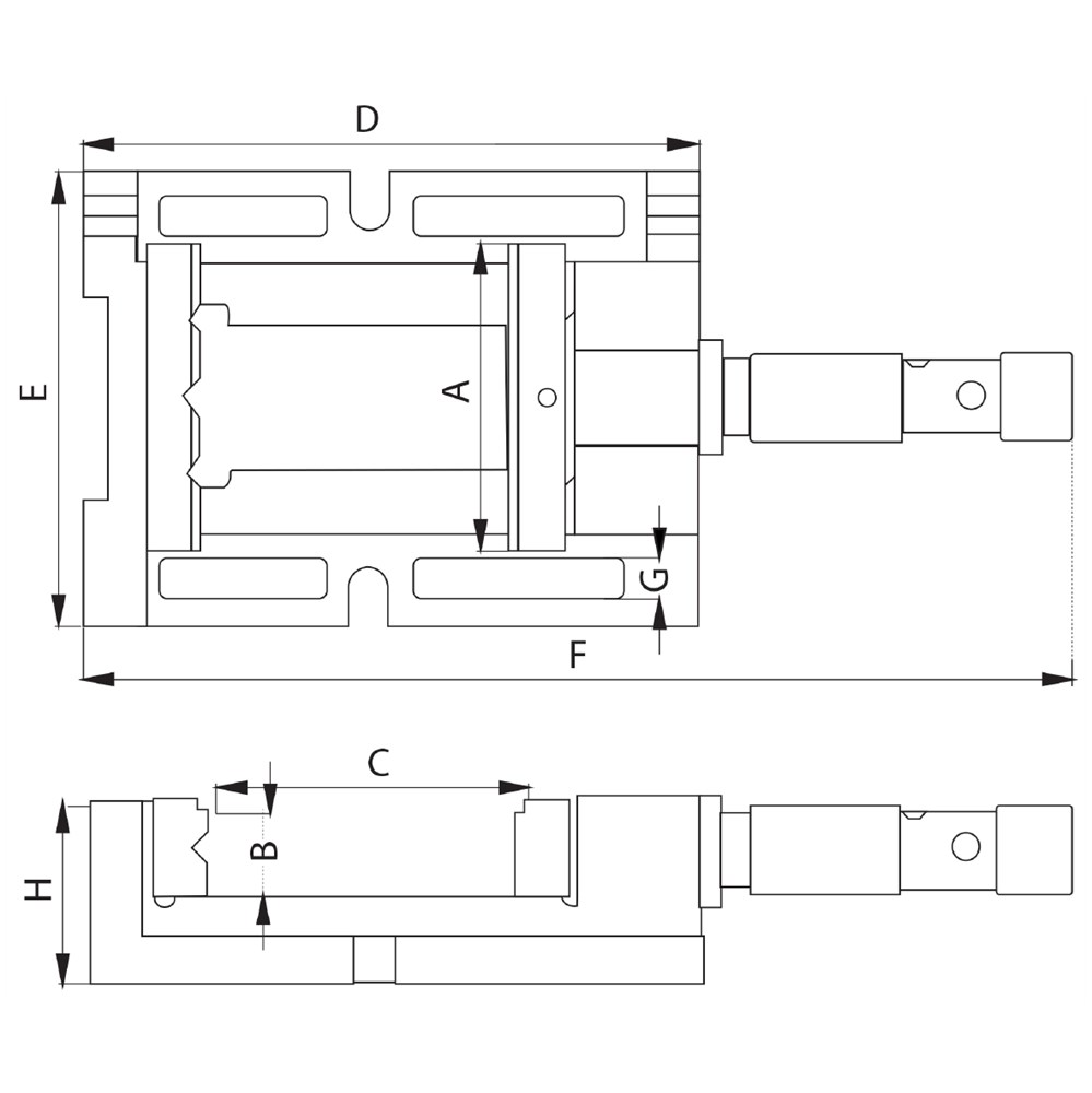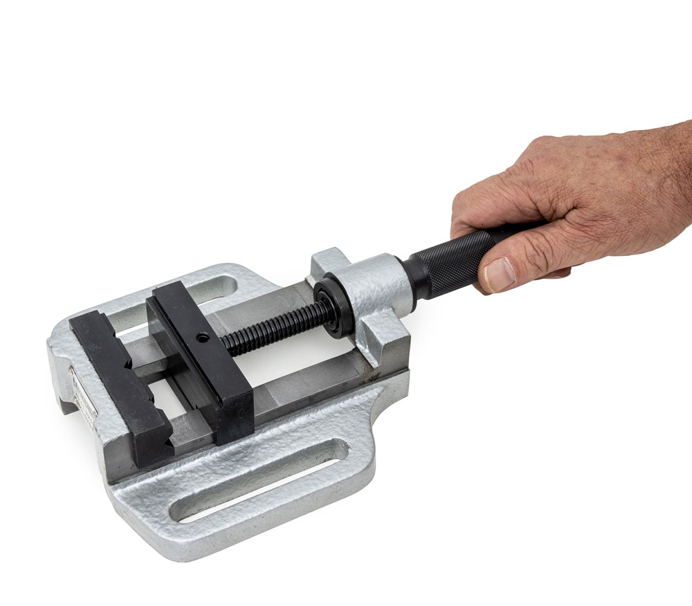 Werkplaatskwaliteit universele boorklem met vaste prismabek.