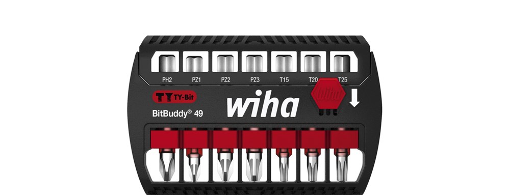 Geen hand vrij en genoeg van het lastige zoeken naar de juiste bit? Met de Wiha BitBuddy® kunnen de bits direct door de machine worden opgenomen en ook weer eenvoudig in de houder terug worden geschoven. Dankzij de nieuwe rangschikking van de bits in de houder en de gelaserde profielmaat op de onderzijde van de bits wordt het selecteren van de juiste maat bij het uitnemen tot kinderspel. De inbegrepen TY-bit is als multitalent geschikt voor alle typen schroeven, zowel T-vormig als Y-vormig, en daarmee het ideale gereedschap voor schroeven in álle materialen. Dankzij de gepatenteerde, verlengde torsiezone is de bit ook geschikt voor impact- en slagschroevendraaiers en garandeert deze een 120x langere levensduur ten opzichte van de Wiha standaardbits. Daarnaast kunnen de gekleurde bits snel en eenvoudig worden gevonden – en dankzij de gekleurde mantel ook in het donker met UV-licht.